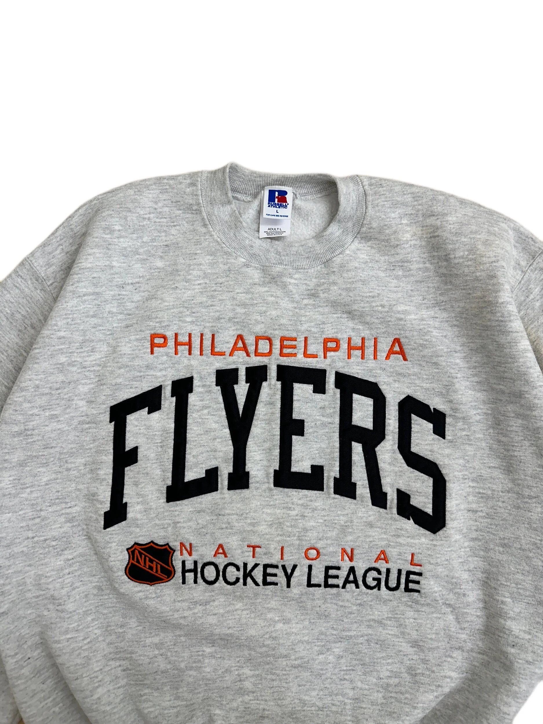 Archive › 90's Flyers Sweatshirt (M) Image 1 of 4 Image 2 of 4 Image 3 of 4 Image 4 of 4 90's Flyers Sweatshirt (M) $150.00 sold out Size: MediumMeasurements: 22.5 x 26Flaws: Minor discoloration on left sleeve Sold Out Added! Size: MediumMeasurements: 22.5 x 26Flaws: Minor discoloration on left sleeve