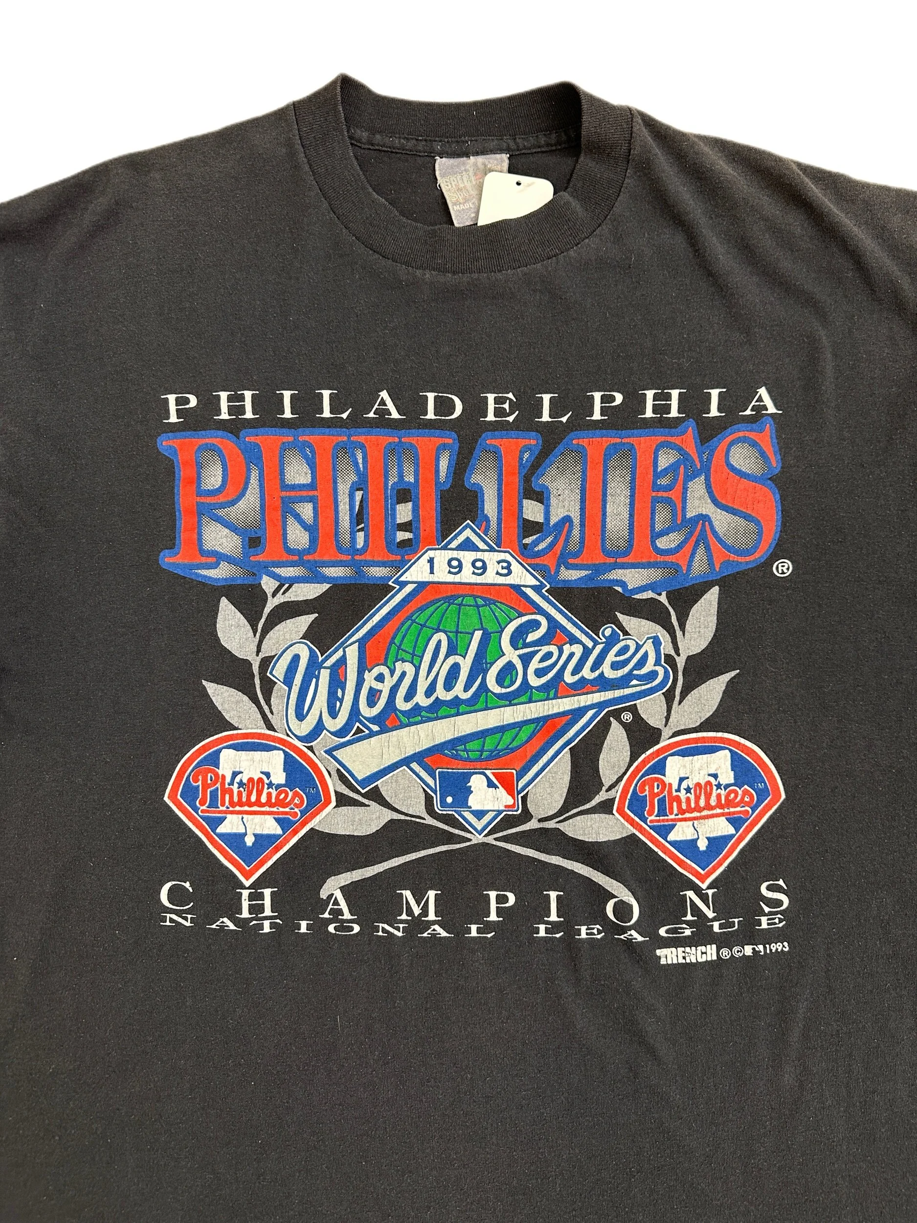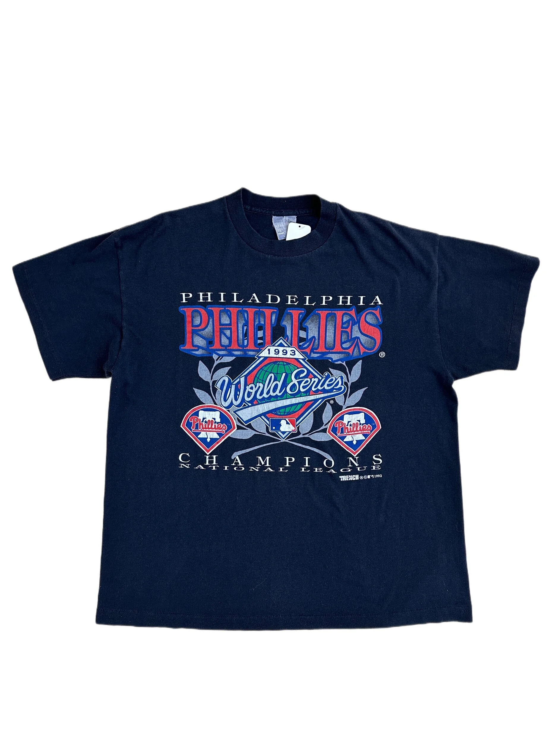Shop › 1993 Phillies Tee (L) Image 1 of 3 Image 2 of 3 Image 3 of 3 1993 Phillies Tee (L) $70.00 sold out Size: LargeMeasurements: 22 x 27Flaws: None Sold Out Added! Size: LargeMeasurements: 22 x 27Flaws: None