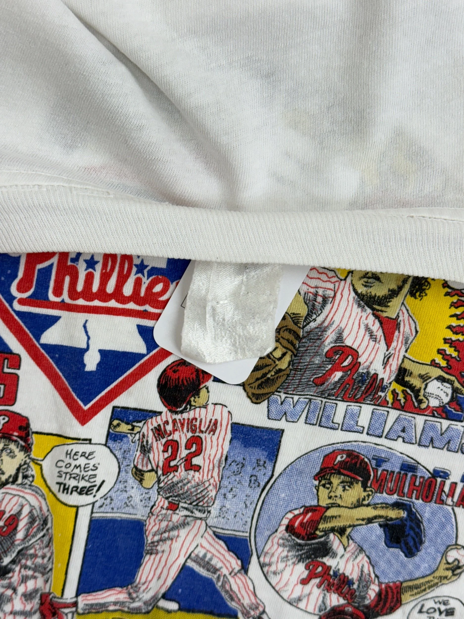 Shop › 90s Phillies Comic Tee (XL) Image 1 of 4 Image 2 of 4 Image 3 of 4 Image 4 of 4 90s Phillies Comic Tee (XL) $148.00 Size: XLMeasurements: 23 × 32Flaws: has a stain on the back right shoulder Purchase Added! Size: XLMeasurements: 23 × 32Flaws: has a stain on the back right shoulder