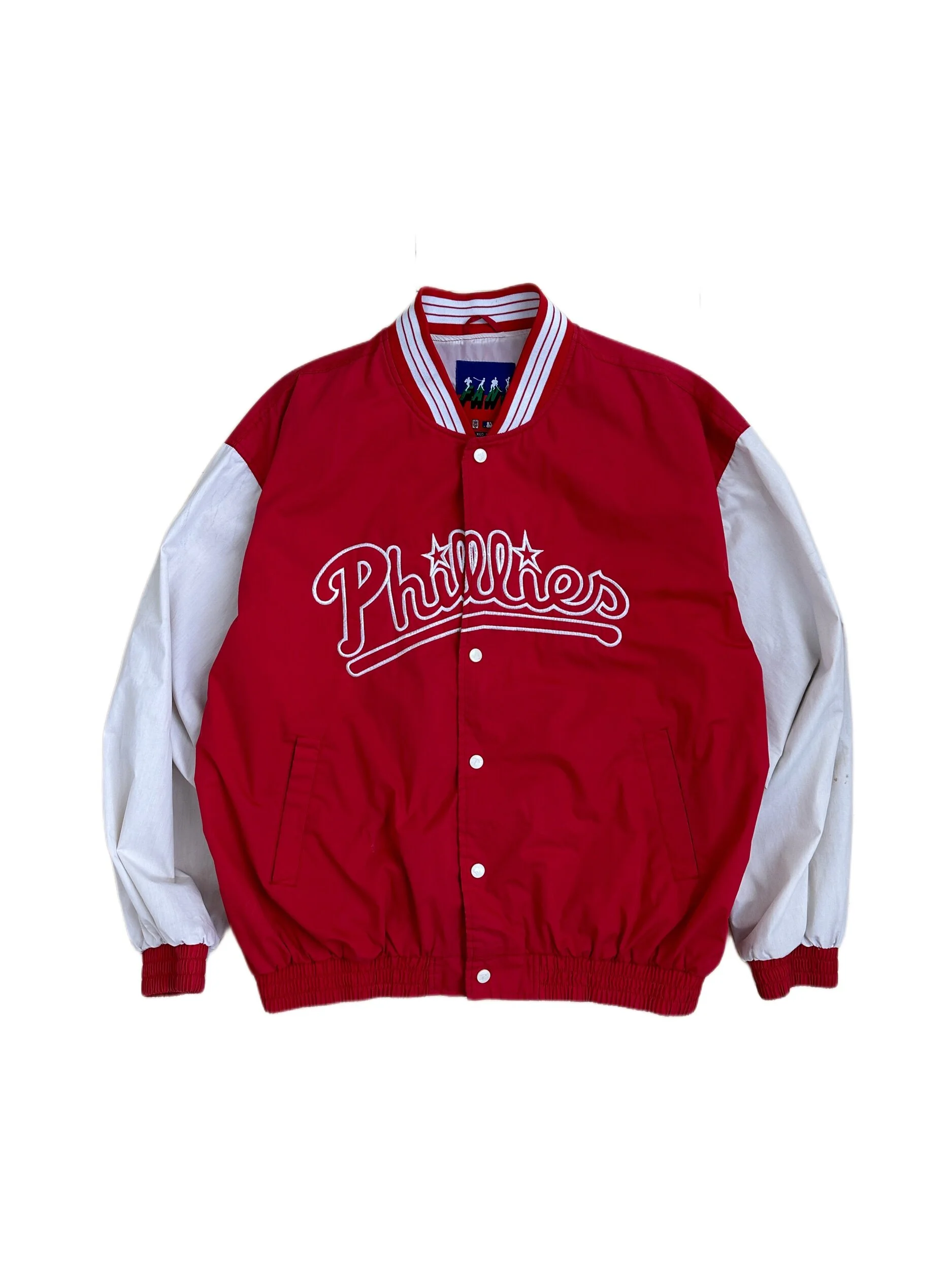 Shop › 90’s Phillies Bomber Jacket (XL) Image 1 of 5 Image 2 of 5 Image 3 of 5 Image 4 of 5 Image 5 of 5 90’s Phillies Bomber Jacket (XL) $100.00 sold out Size: XLMeasurements: 27 x 28Flaws: has some stains on the left sleeve Sold Out Added! Size: XLMeasurements: 27 x 28Flaws: has some stains on the left sleeve