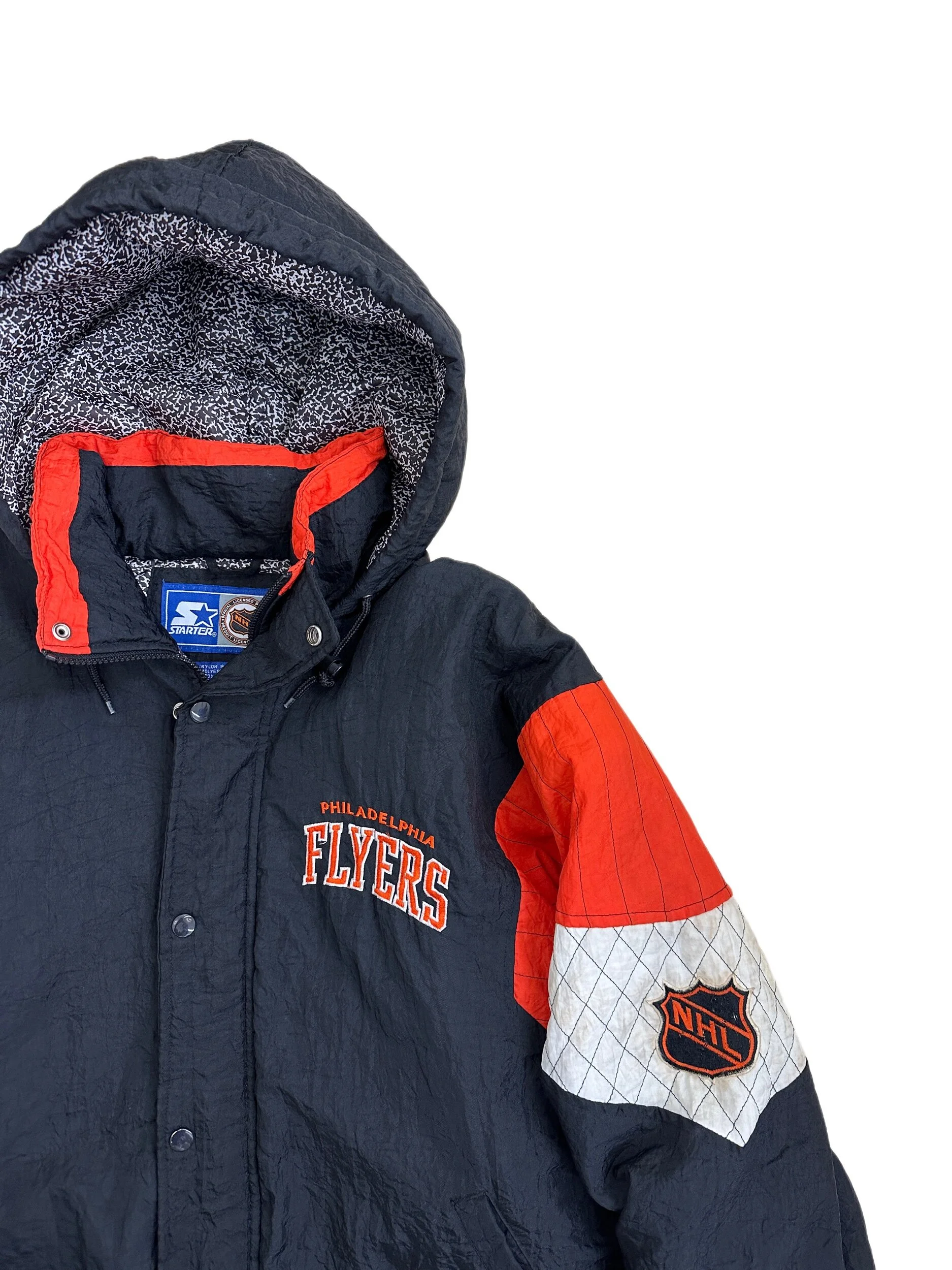 Shop › 90’s Flyers Starter Jacket (XL) Image 1 of 5 Image 2 of 5 Image 3 of 5 Image 4 of 5 Image 5 of 5 90’s Flyers Starter Jacket (XL) $140.00 sold out Size: XLMeasurements: 27 x 29Flaws: has some staining near NHL logo on the left sleeve Sold Out Added! Size: XLMeasurements: 27 x 29Flaws: has some staining near NHL logo on the left sleeve