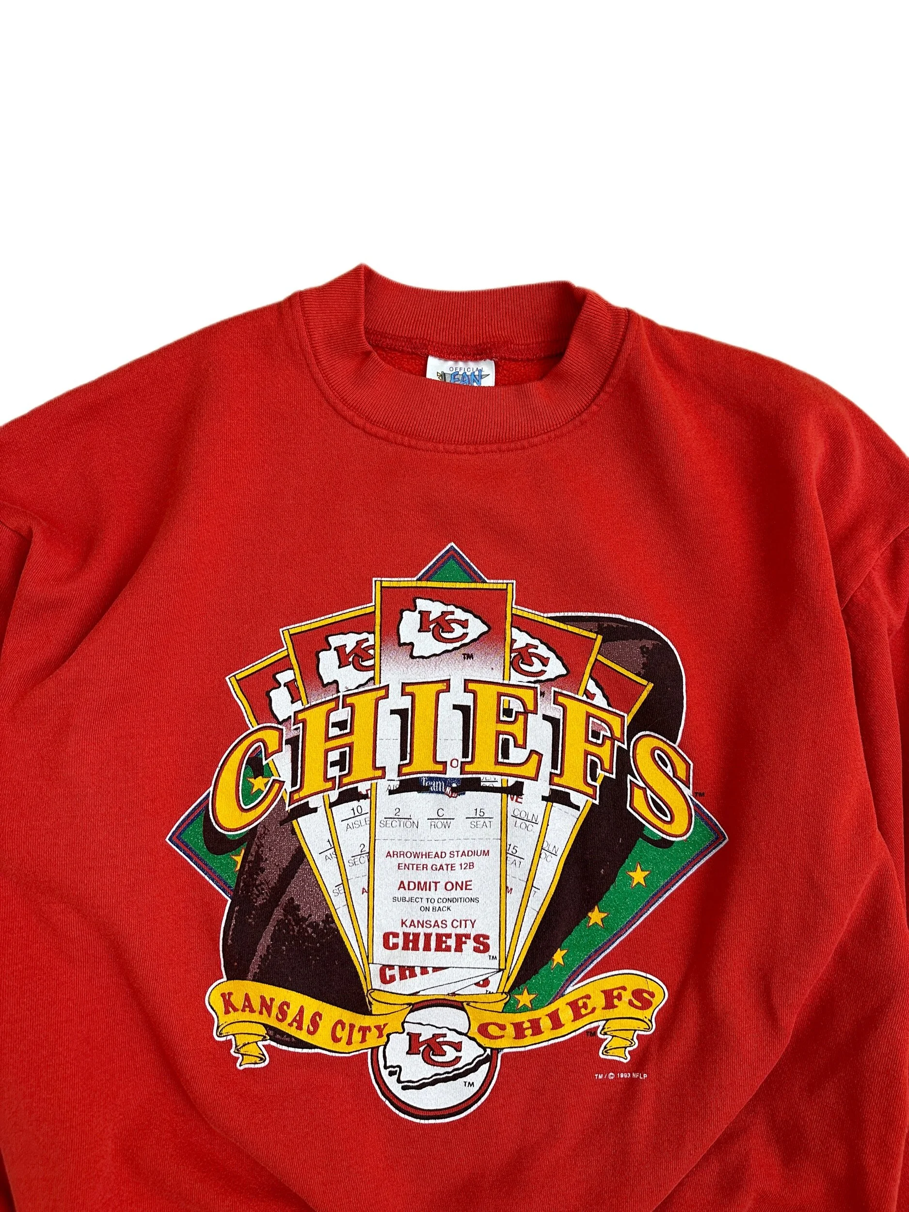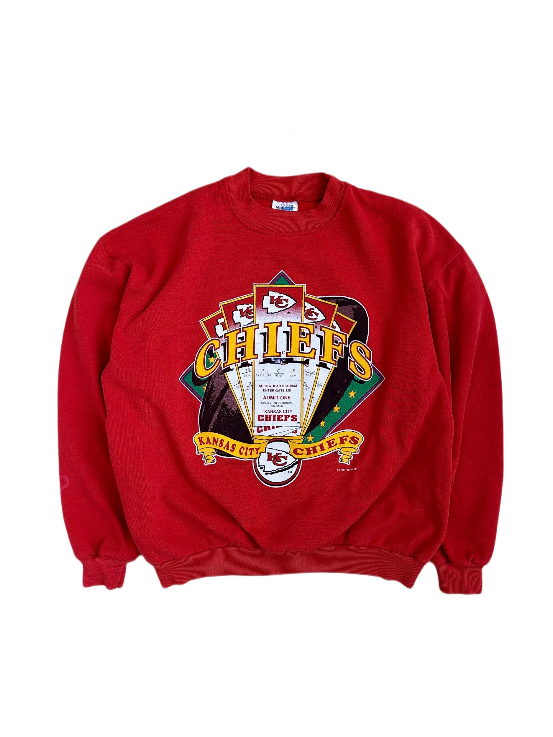 Shop › 90’s Chiefs Sweatshirt (L) Image 1 of 4 Image 2 of 4 Image 3 of 4 Image 4 of 4 90’s Chiefs Sweatshirt (L) $80.00 sold out Size: LargeMeasurements: 23 x 25Flaws: none Sold Out Added! Size: LargeMeasurements: 23 x 25Flaws: none