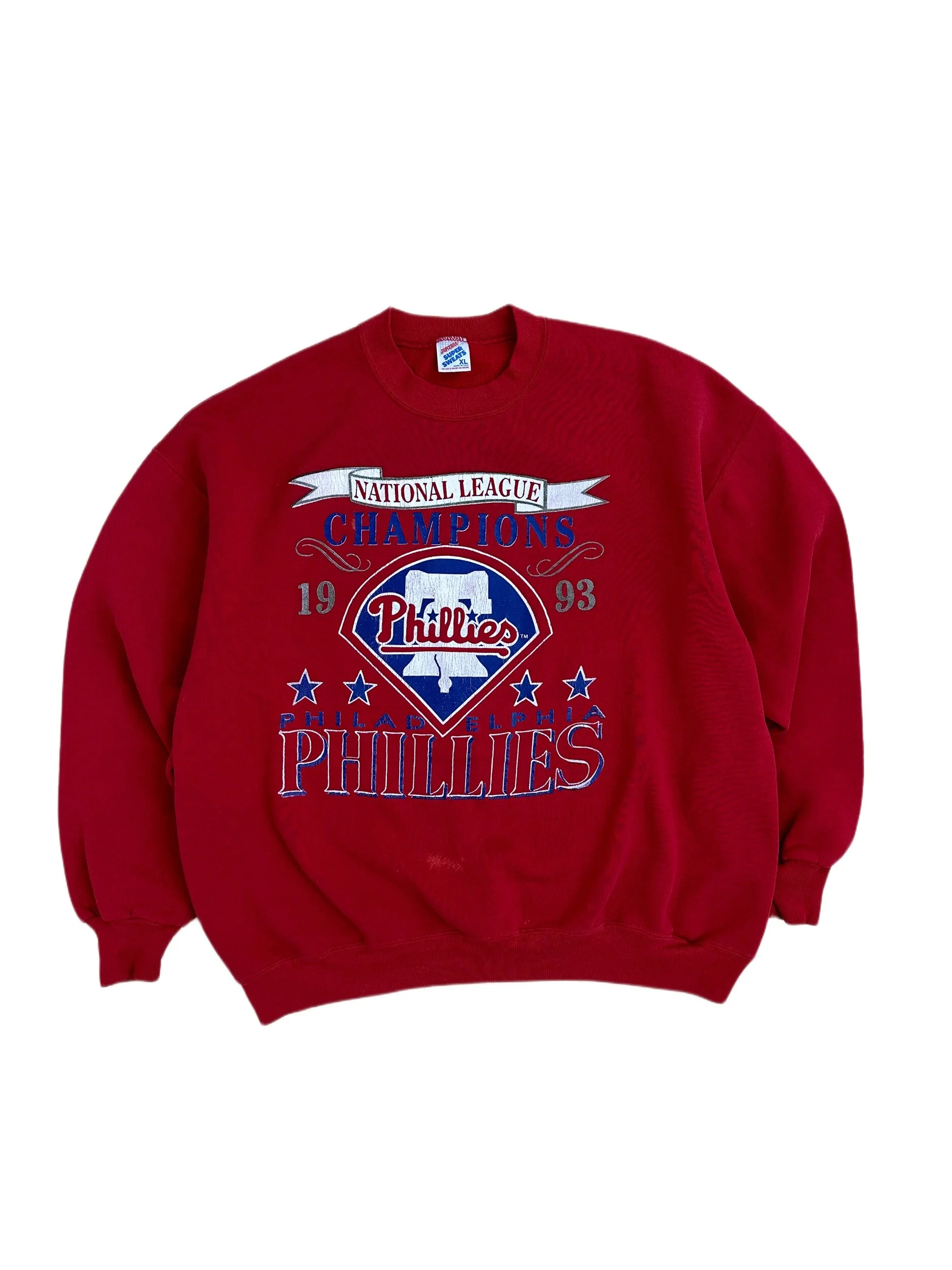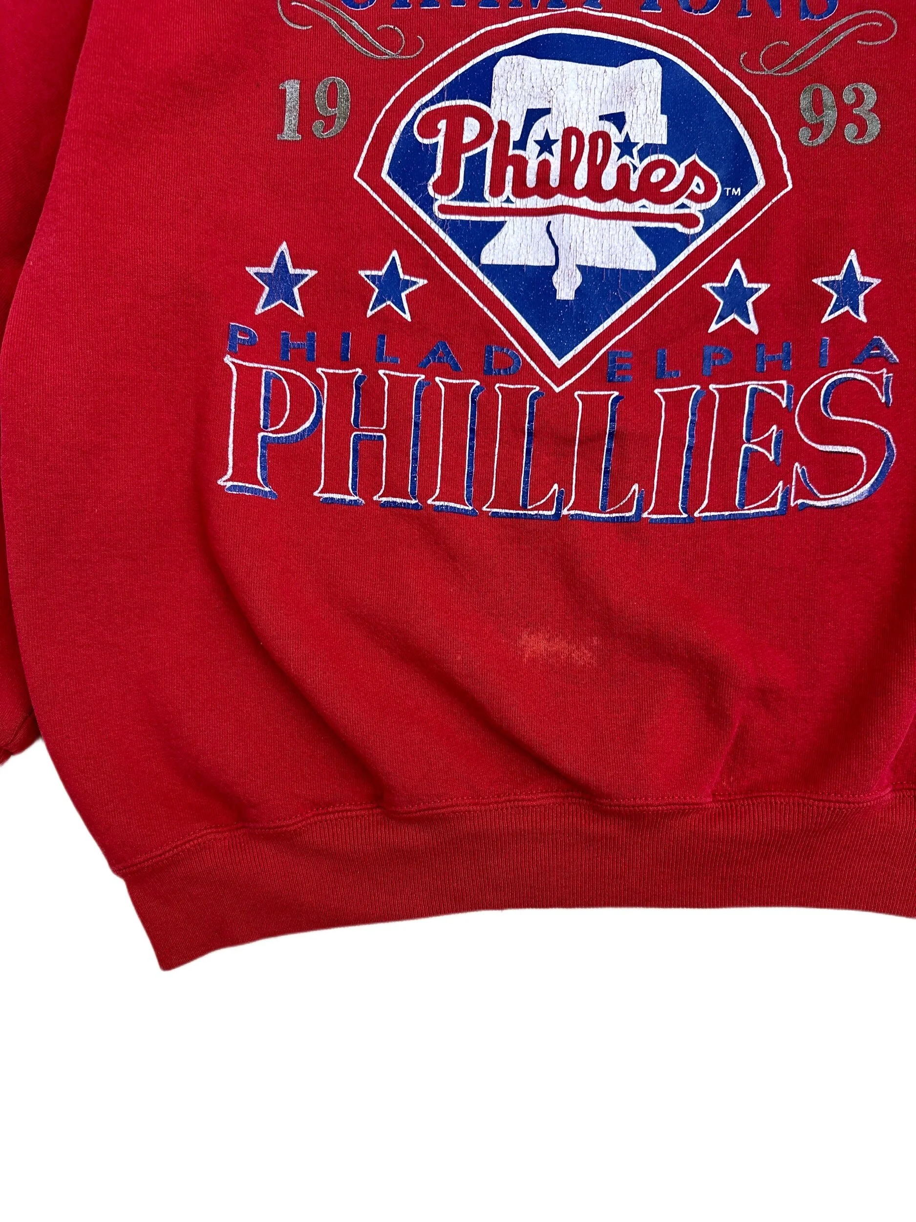 Shop › 90’s Philadelphia Phillies Sweatshirt (M) Image 1 of 4 Image 2 of 4 Image 3 of 4 Image 4 of 4 90’s Philadelphia Phillies Sweatshirt (M) $100.00 sold out Size: mediumMeasurements: 23 x 25Flaws: has a minor bleach stain center bottom Sold Out Added! Size: mediumMeasurements: 23 x 25Flaws: has a minor bleach stain center bottom