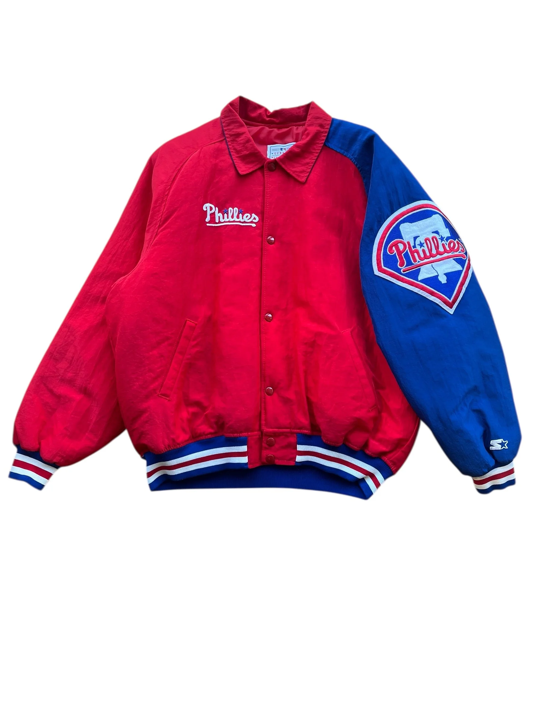 Shop › 90s Phillies Starter Jacket (L) Image 1 of 3 Image 2 of 3 Image 3 of 3 90s Phillies Starter Jacket (L) $198.00 sold out Size: LargeMeasurements: 26 × 27Flaws: No Major Flaws Sold Out Added! Size: LargeMeasurements: 26 × 27Flaws: No Major Flaws