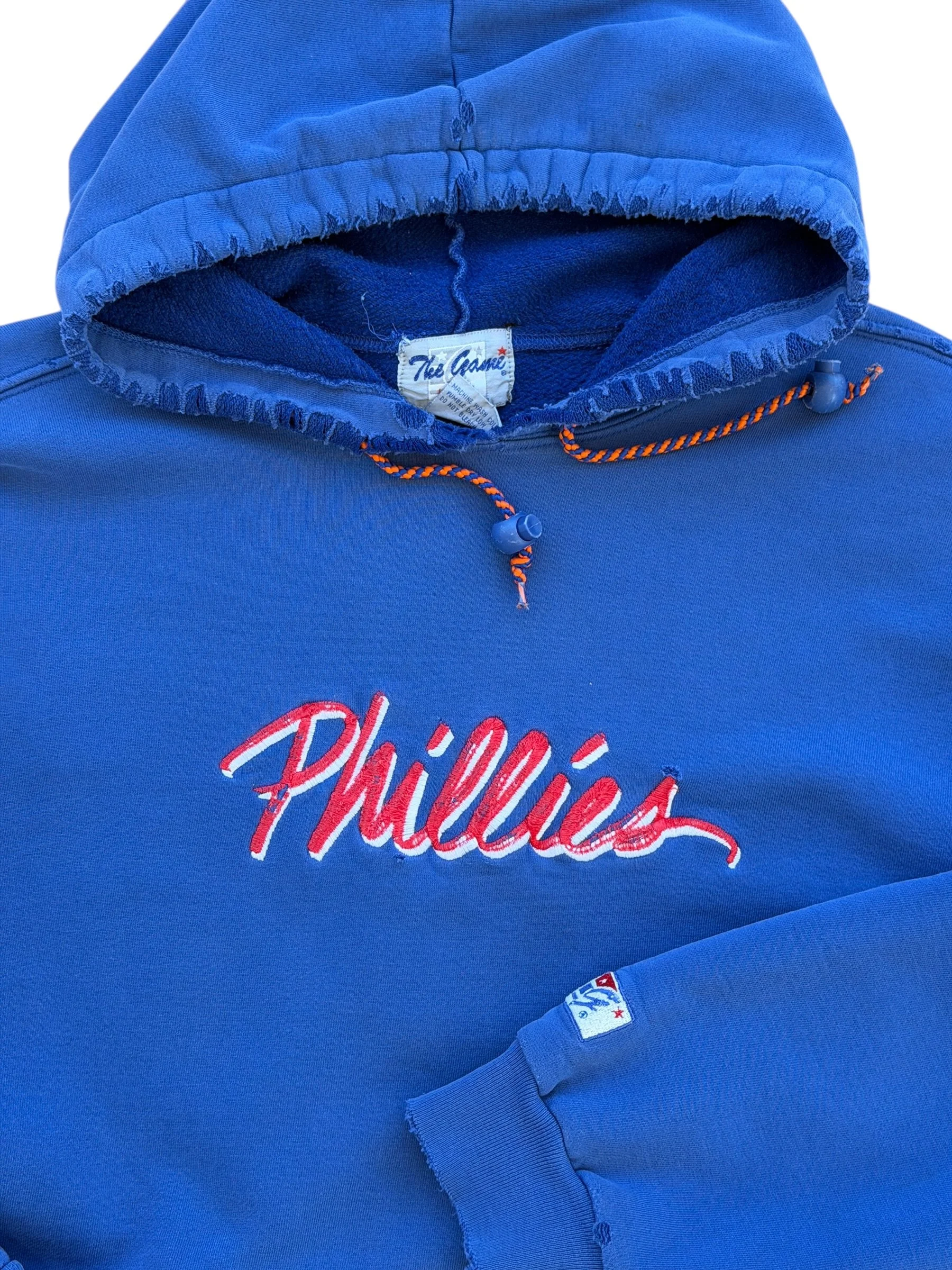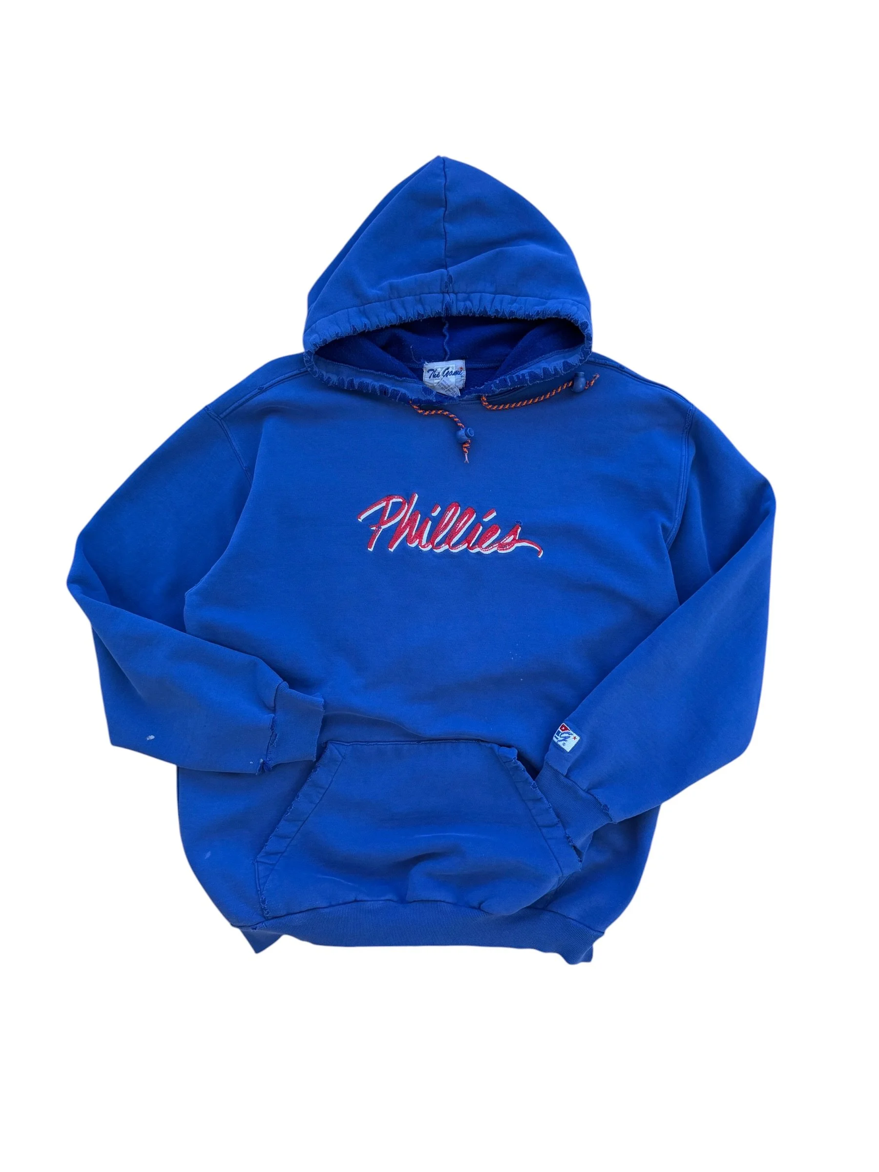Shop › 90s Phillies Hoodie (M) Image 1 of 3 Image 2 of 3 Image 3 of 3 90s Phillies Hoodie (M) $98.00 Size: MediumMeasurements: 22.5 × 29Flaws: has distressing and wear throughout Purchase Added! Size: MediumMeasurements: 22.5 × 29Flaws: has distressing and wear throughout