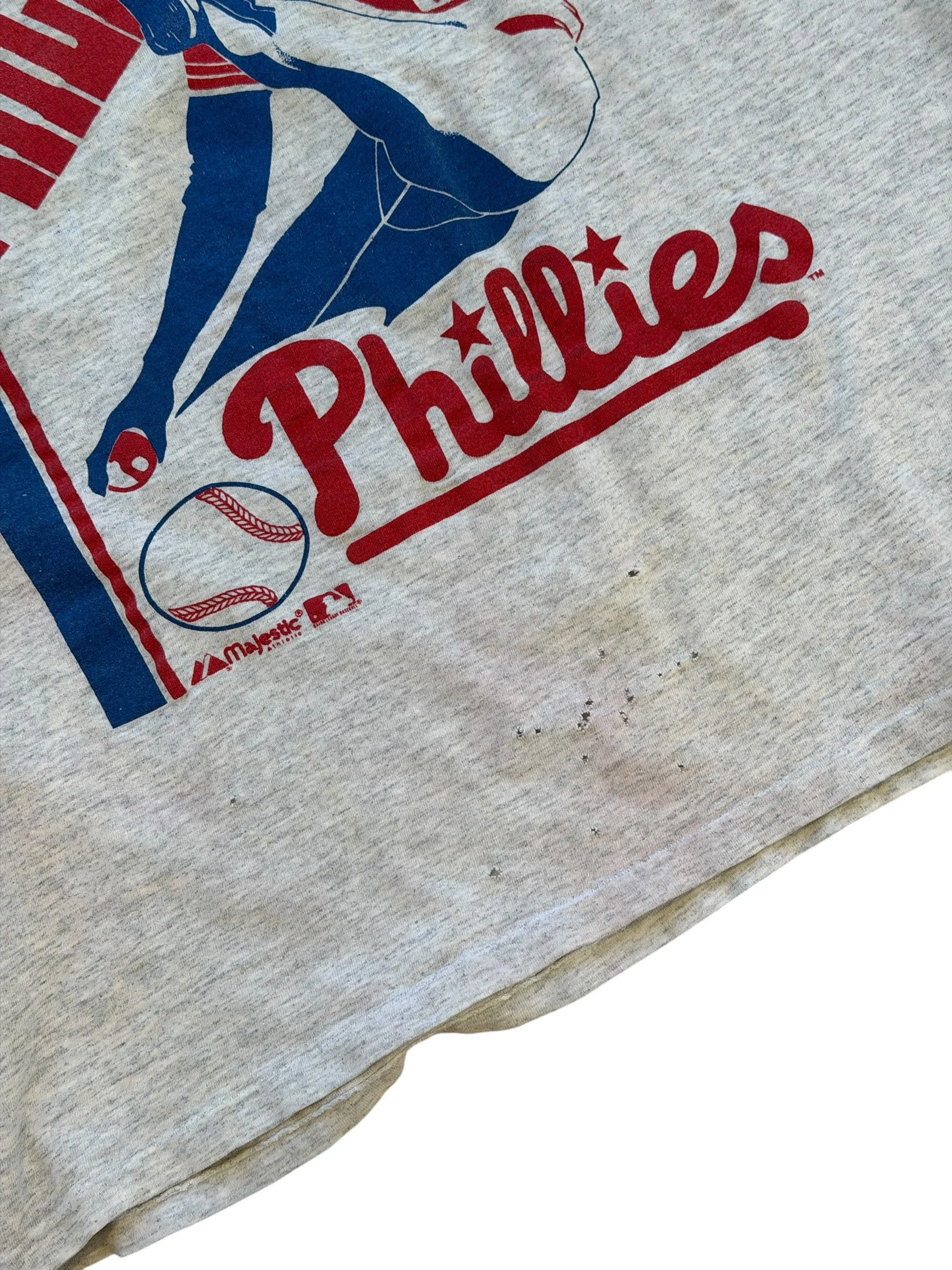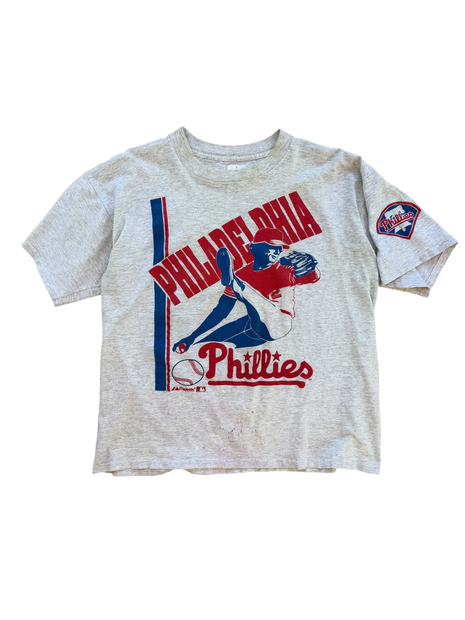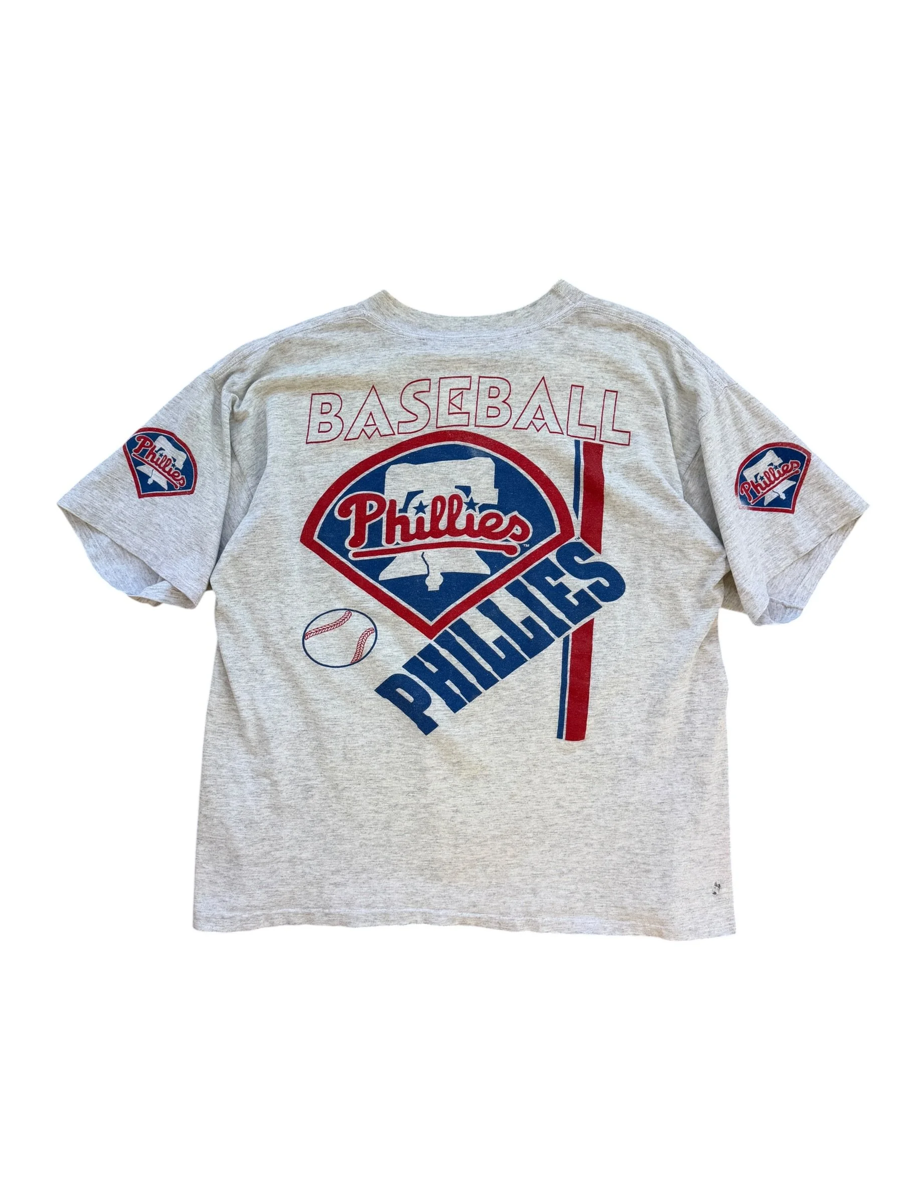 Shop › 90s Phillies Tee (L) Image 1 of 3 Image 2 of 3 Image 3 of 3 90s Phillies Tee (L) $48.00 sold out Size: SmallMeasurements: 23.5 × 27Flaws: pinholes and some red bleeding Sold Out Added! Size: SmallMeasurements: 23.5 × 27Flaws: pinholes and some red bleeding
