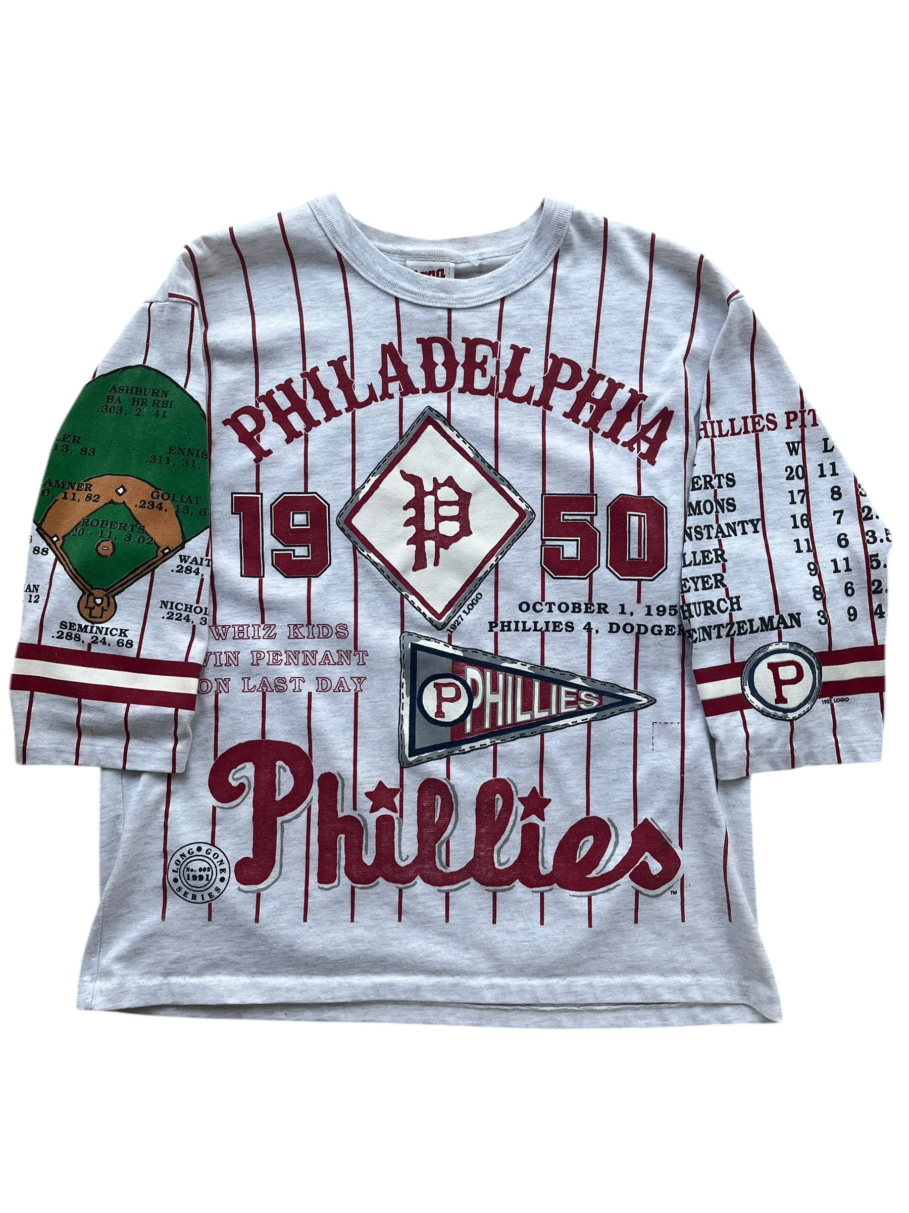 Shop › 1991 Phillies Long Gone Tee (L) Image 1 of 4 Image 2 of 4 Image 3 of 4 Image 4 of 4 1991 Phillies Long Gone Tee (L) $228.00 Size: LargeMeasurements: 22.5 × 26.5Flaws: No Major Flaws Purchase Added! Size: LargeMeasurements: 22.5 × 26.5Flaws: No Major Flaws