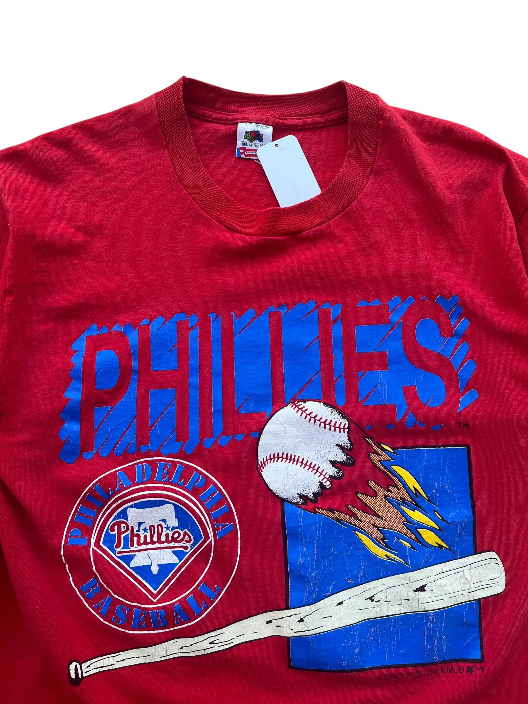 Shop › 1991 Phillies Tee (M) Image 1 of 3 Image 2 of 3 Image 3 of 3 1991 Phillies Tee (M) $58.00 Size: MediumMeasurements: 21 × 29.5 Flaws: No Major Flaws Purchase Added! Size: MediumMeasurements: 21 × 29.5 Flaws: No Major Flaws