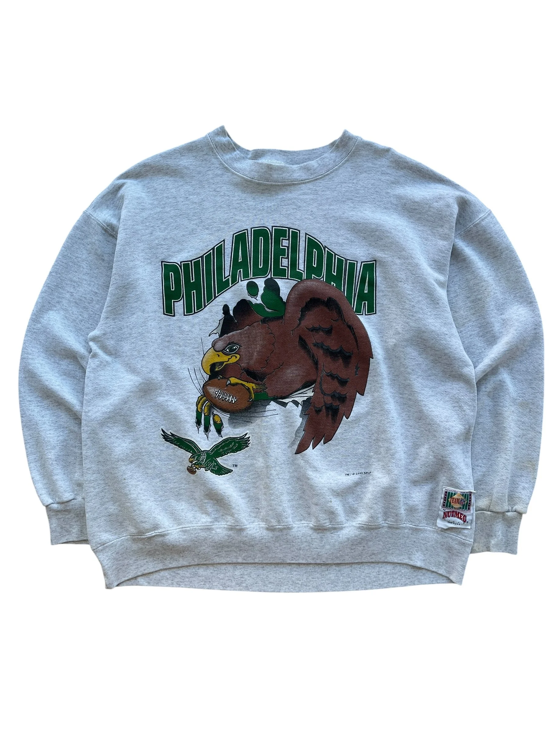 Shop › 1993 Eagles Nutmeg Crewneck (L) Image 1 of 5 Image 2 of 5 Image 3 of 5 Image 4 of 5 Image 5 of 5 1993 Eagles Nutmeg Crewneck (L) $248.00 Size: Large, Boxy Fit Measurements: 26 × 27.5Flaws: Stains on the front and back of the sleeve (as pictured) Purchase Added! Size: Large, Boxy Fit Measurements: 26 × 27.5Flaws: Stains on the front and back of the sleeve (as pictured)