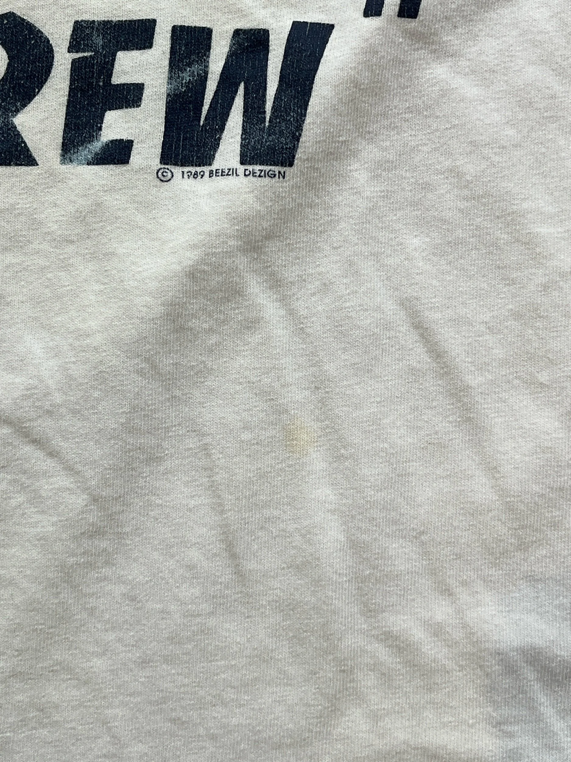 Flaws: Sleeves were cut to create a t-shirt, there are some yellow stains on the front (as pictured) and some yellowing on the collar