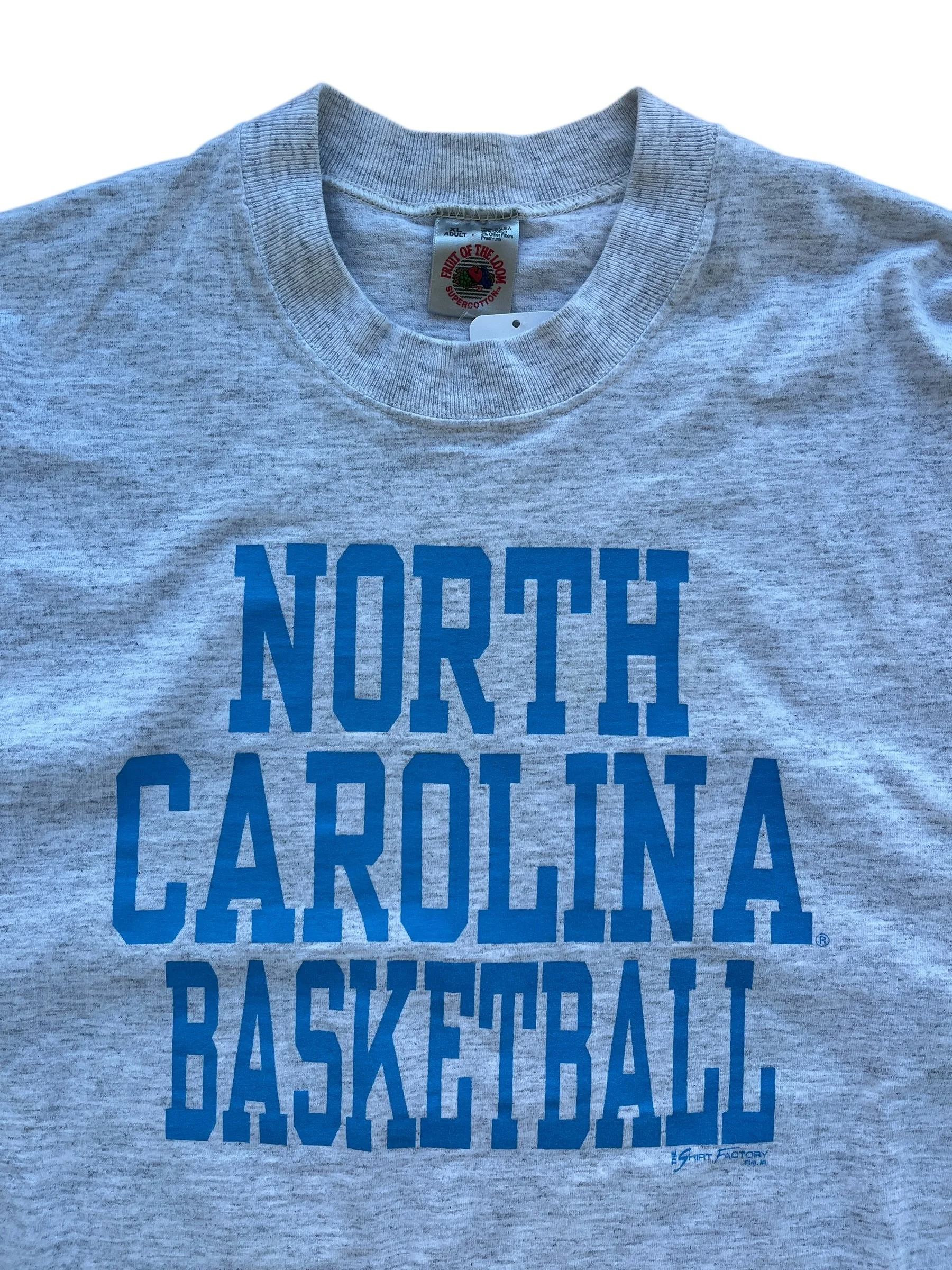Shop › 90s UNC Basketball Tee (XL) Image 1 of 3 Image 2 of 3 Image 3 of 3 90s UNC Basketball Tee (XL) $48.00 sold out Size: XLMeasurements: 24.5 × 31Flaws: Yellow stain near the bottom hem Sold Out Added! Size: XLMeasurements: 24.5 × 31Flaws: Yellow stain near the bottom hem