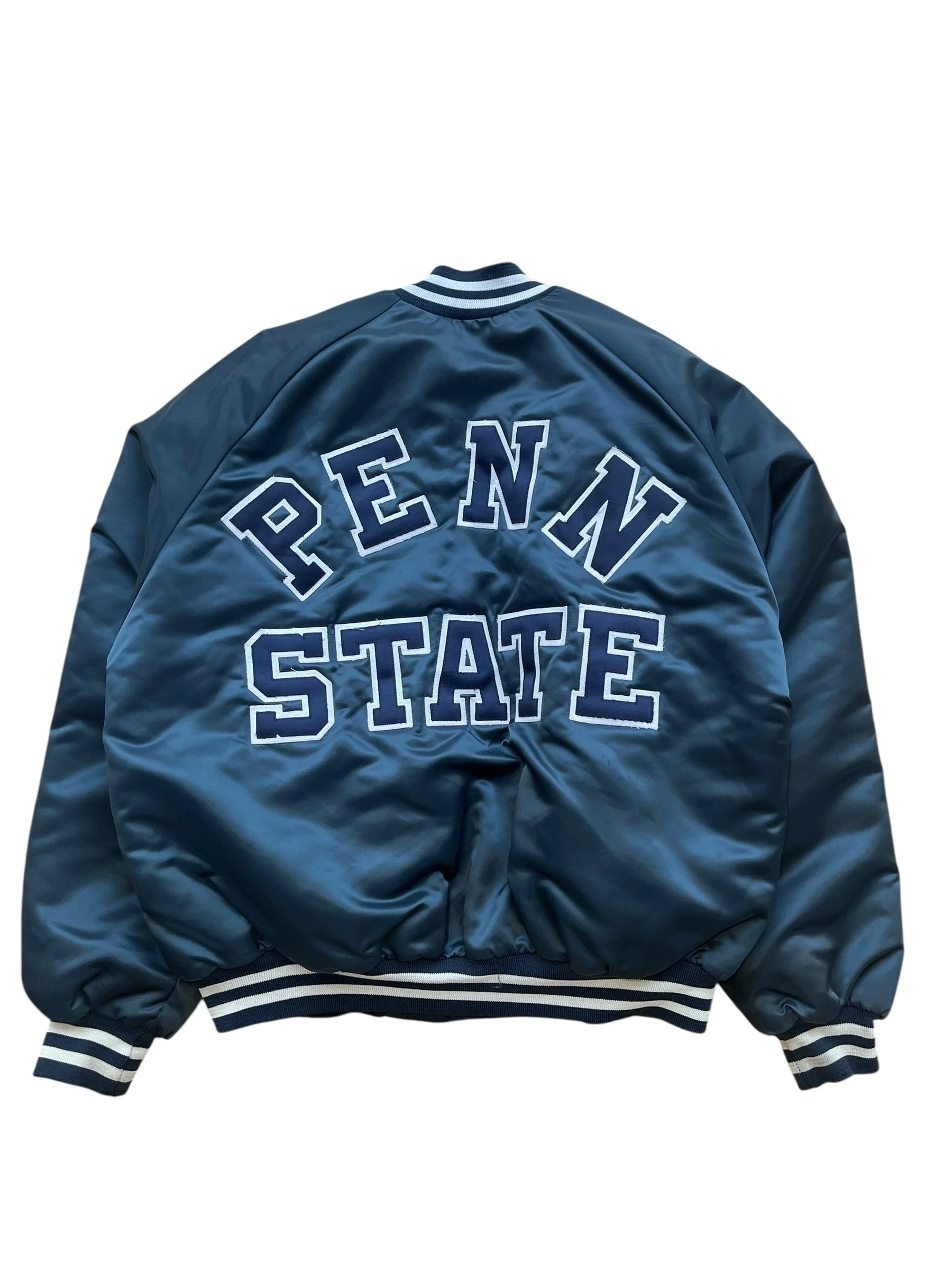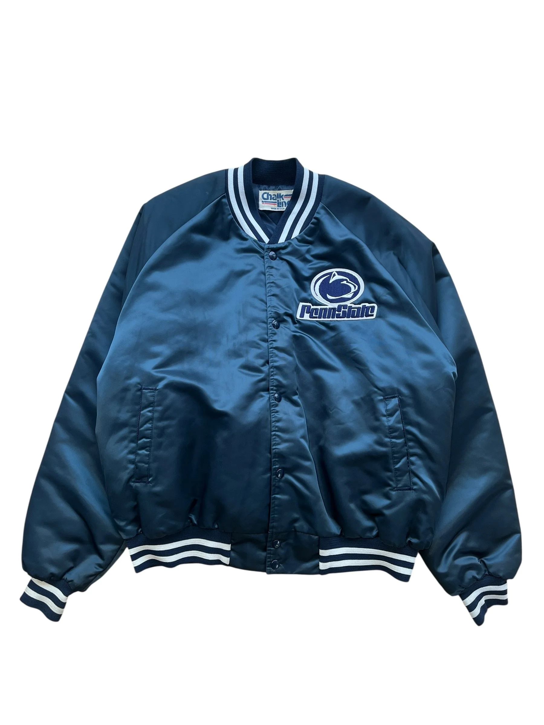 Shop › 90s Penn State Satin Jacket (XL) Image 1 of 4 Image 2 of 4 Image 3 of 4 Image 4 of 4 90s Penn State Satin Jacket (XL) $148.00 Size: XLMeasurements: 27.5 × 27.5Flaws: Stains on the front of the jacket (as pictured) Purchase Added! Size: XLMeasurements: 27.5 × 27.5Flaws: Stains on the front of the jacket (as pictured)