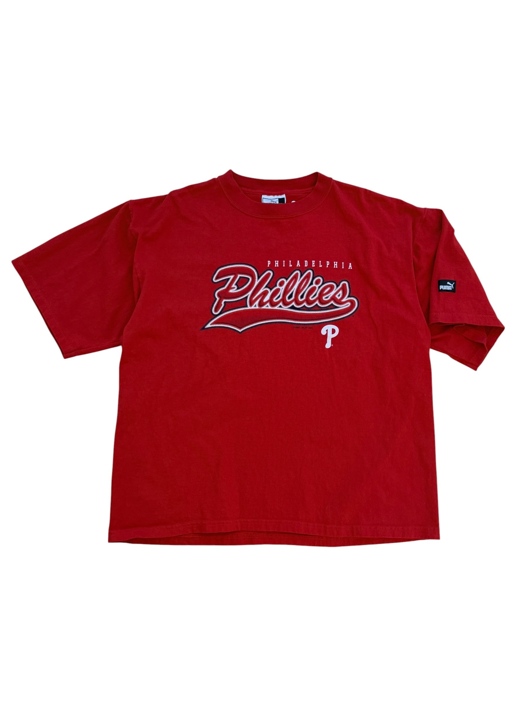 Shop › Y2k Phillies Tee (XL) Image 1 of 3 Image 2 of 3 Image 3 of 3 Y2k Phillies Tee (XL) $48.00 Size: XLMeasurements: 26 × 29Flaws: no major flaws Purchase Added! Size: XLMeasurements: 26 × 29Flaws: no major flaws