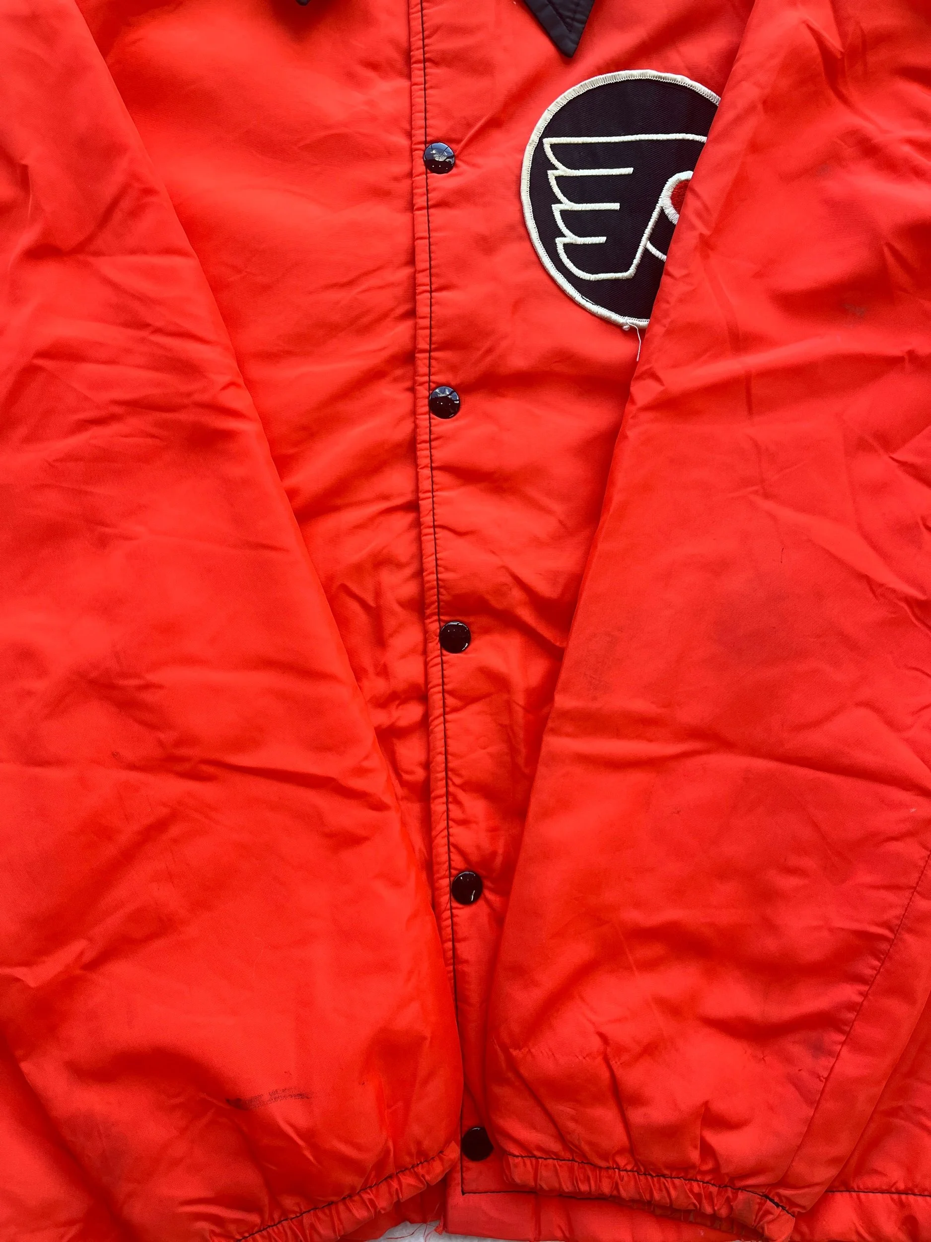 Shop › 70s Flyers Jacket (L) Image 1 of 4 Image 2 of 4 Image 3 of 4 Image 4 of 4 70s Flyers Jacket (L) $98.00 Size: LargeMeasurements: 26.5 × 28Flaws: Stains on the sleeve and back on the jacket (as pictured) Purchase Added! Size: LargeMeasurements: 26.5 × 28Flaws: Stains on the sleeve and back on the jacket (as pictured)