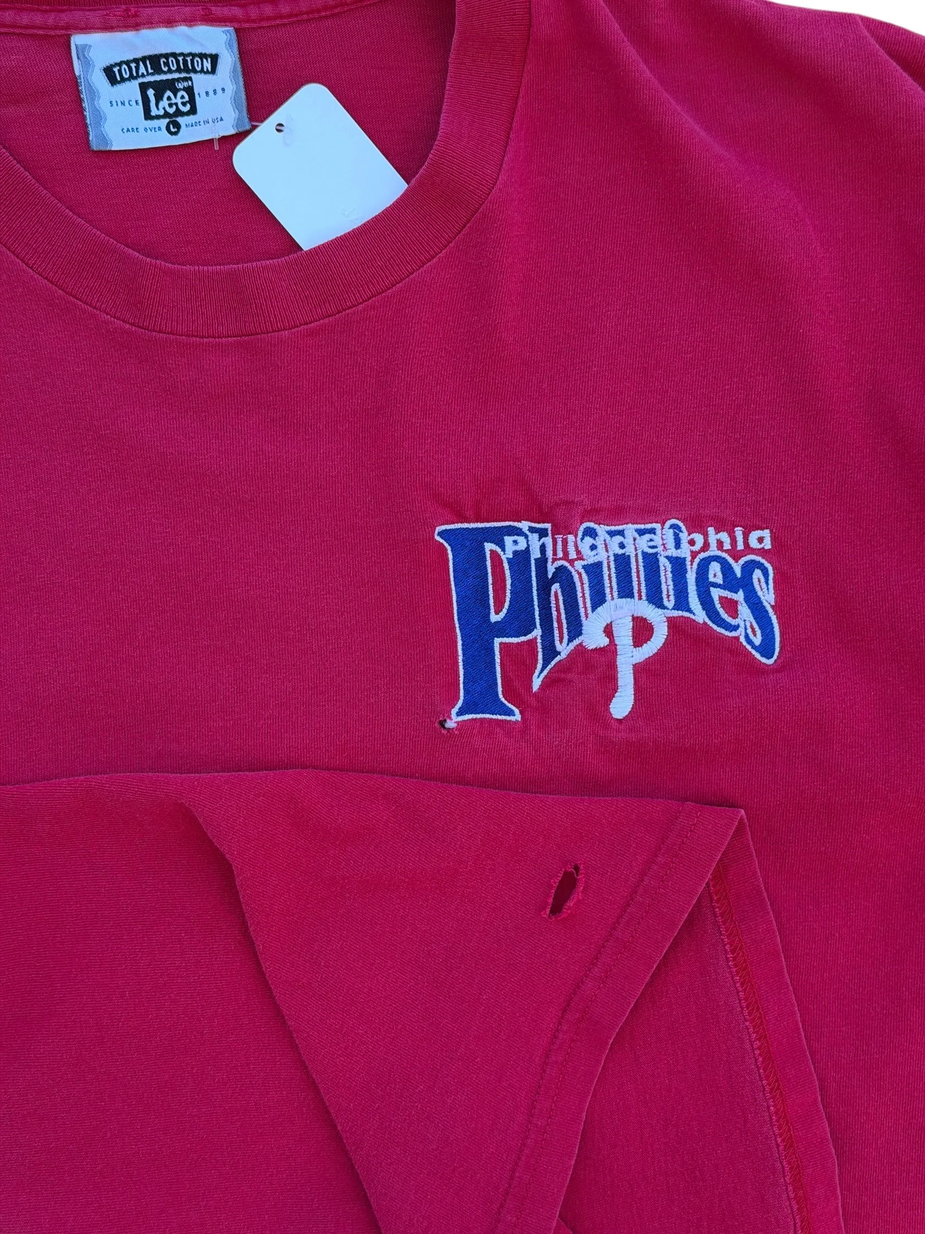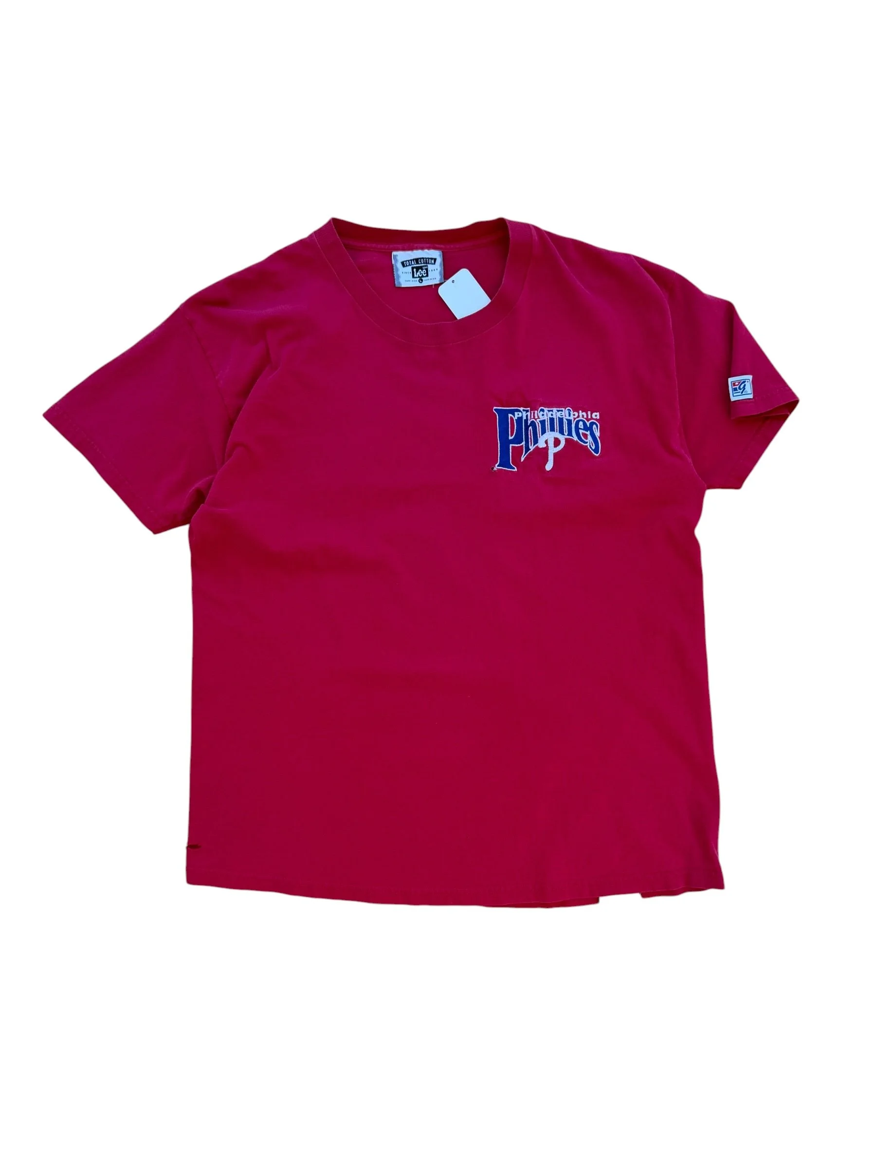 Shop › 90s Phillies Tee (M) Image 1 of 3 Image 2 of 3 Image 3 of 3 90s Phillies Tee (M) $48.00 Size: MediumMeasurements: 21.5 × 27.5Flaws: has some pinholes Purchase Added! Size: MediumMeasurements: 21.5 × 27.5Flaws: has some pinholes
